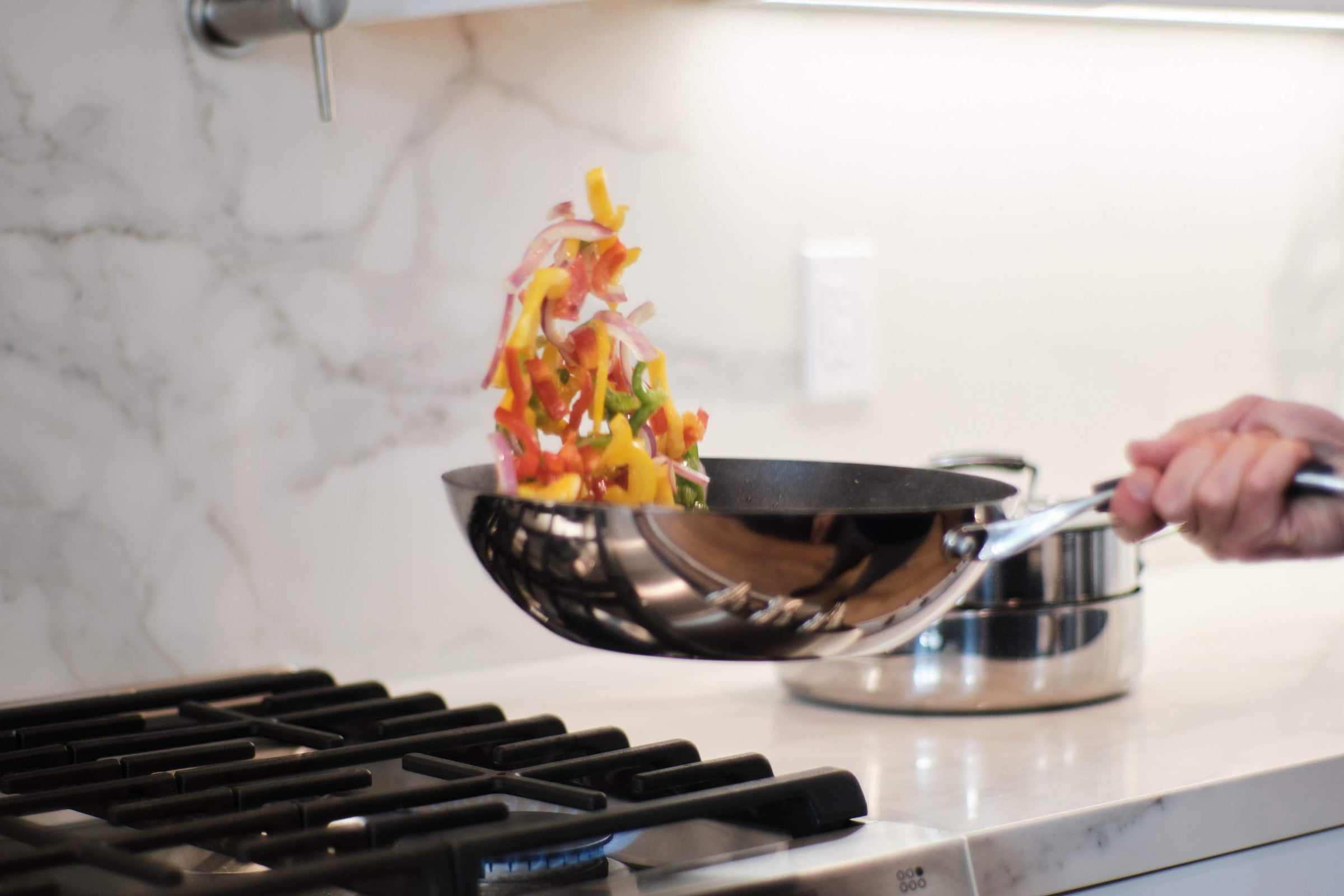 Trimetal 11" wok with non-stick coating.  Professional grade cookware for every day use. 3-layer non-stick PFOA free coating makes this the best wok for easy, everyday stir-frying and sautéing.